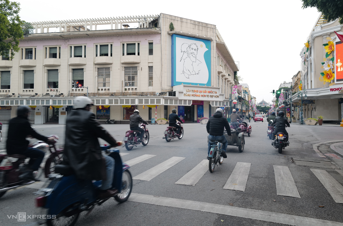 Sáng mùng 1, đường phố Hà Nội vắng lặng hơn ngày thường. Lúc 7h, đường vành đai 2 Trường Chinh - Ngã Tư Sở lác đác xe. Hàng ngày, đây là tuyến đường luôn ùn ứ phương tiện giờ cao điểm.