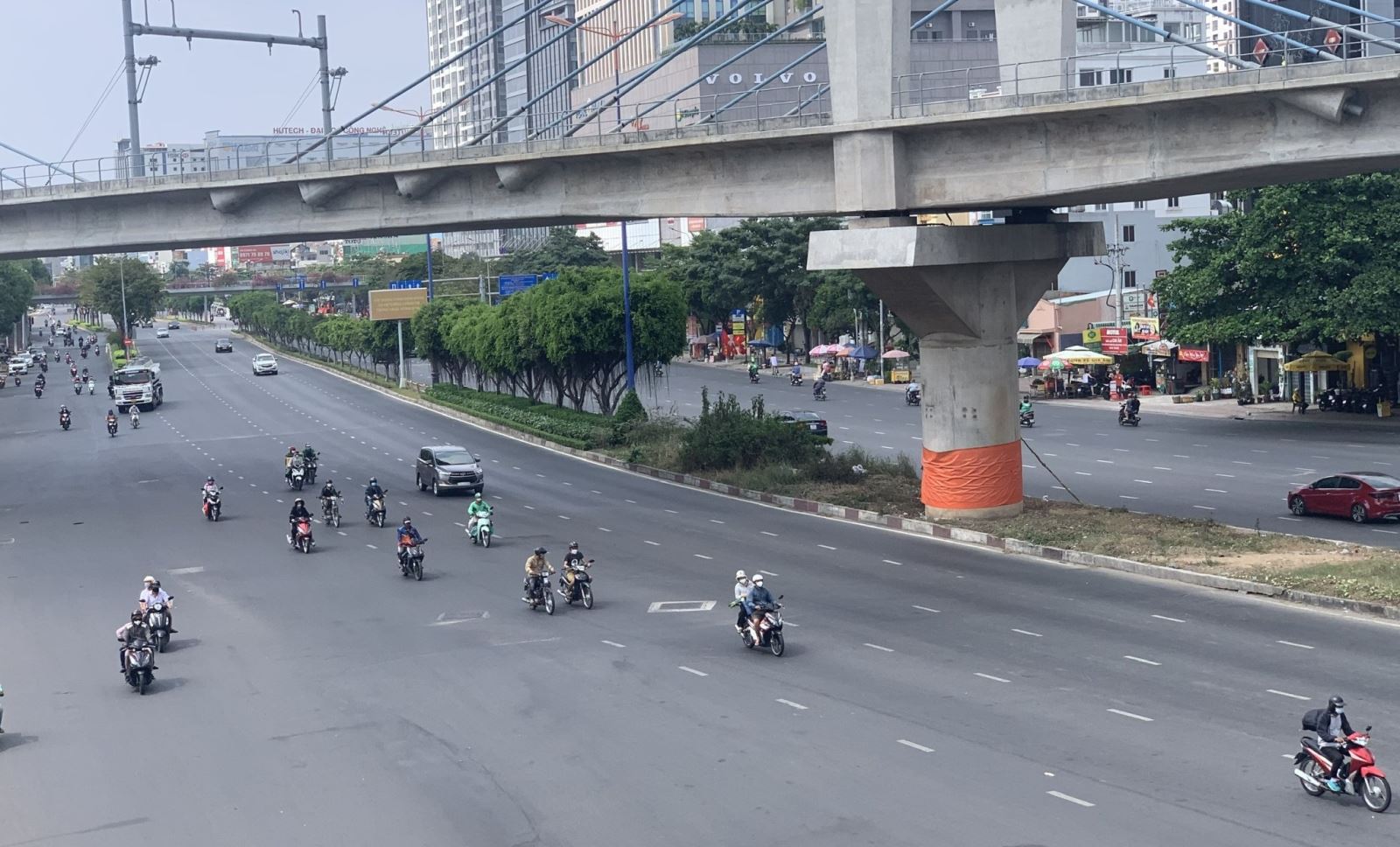 Đến gần trưa, lượng phương tiện lưu thông tại TP Hồ Chí Minh đông hơn nhưng vẫn vắng vẻ so với ngày thường.