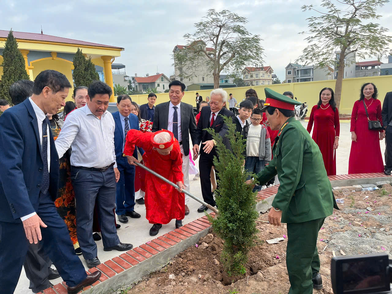 Đại diện thôn Sở Hạ trồng cây tại nhà văn hóa.