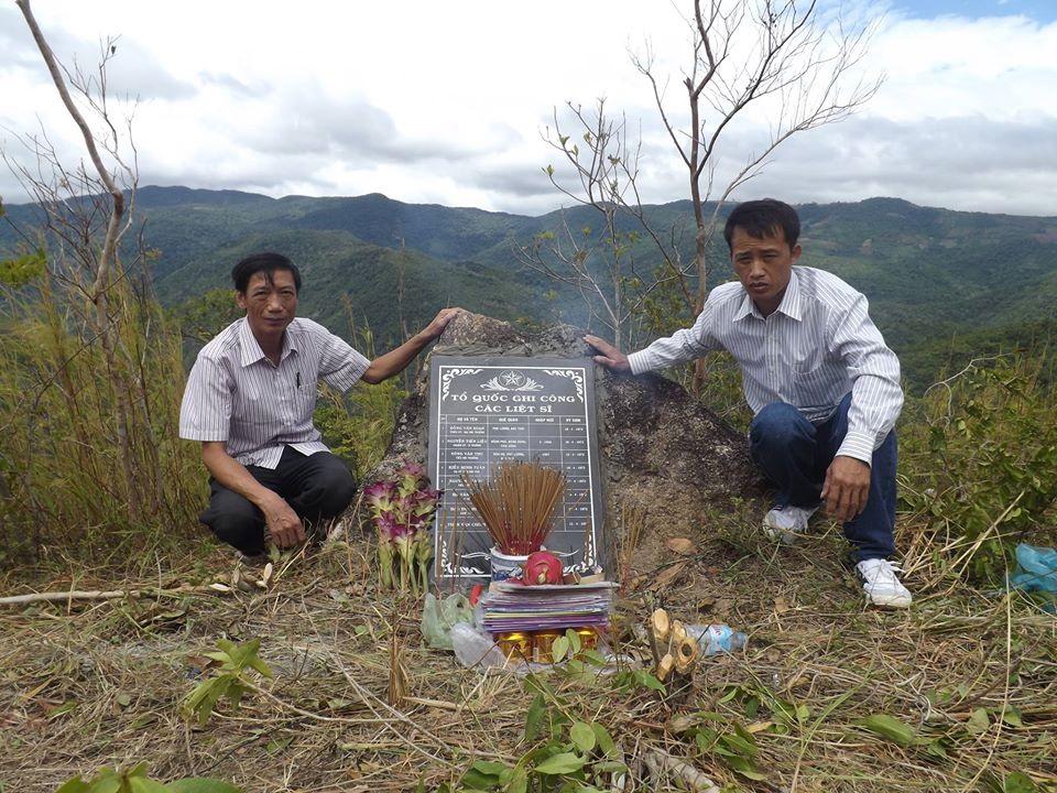 Anh Nguyễn Tuấn (bên trái) con trai liệt sỹ Nguyễn Tiến Liễu đã phát tâm dựng bia ghi tên các liệt sỹ là đồng đội của Cha hy sinh trên Điểm cao 384 xã Tây Thuận, huyện Tây Sơn, tỉnh Bình Định.