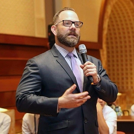 | Ông John Barrett Trew, đại diện của tổ chức Plan International, phát biểu tại hội thảo. Ảnh: Phương Anh |