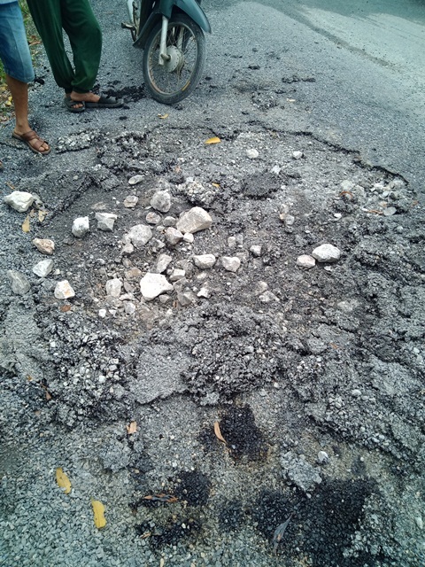 lún, nứt gãy. Tại mép đường, người dân cũng chỉ cần gạt nhẹ cũng đã làm lộ ra