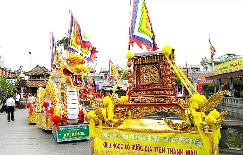Rước kiệu Mẫu Liễu trong ngày tổ chức lễ hội Phủ Dầy là một nghi thức quan trọng. Lễ rước được diễn ra khá náo nhiệt với sự tham gia của các nam nữ thanh đồng, của nhân dân trong thôn, đặc biệt là có các xe tay chở sư chùa Thiên Hương đi thỉnh kinh, đoàn xe tay chở các quan, các vị chức sắc hàng huyện, tổng...