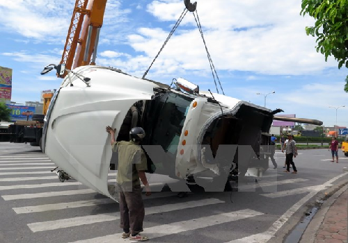 Lực lượng chức năng đang khẩn trương cứu hộ và giải tỏa hiện trường vụ tai nạn. (Ảnh: Văn Đạt/TTXVN)