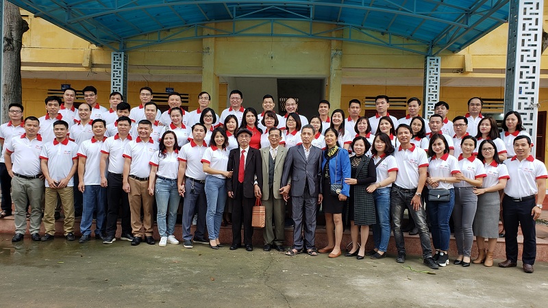 Cựu học sinh niên khóa 1995 – 1999 chụp hình lưu niệm với các thầy cô giáo Trường THCS Lê Quý Đôn.