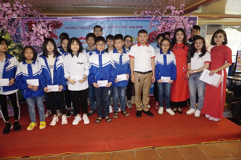 Cựu học sinh niên khóa 1995 – 1999 trao những phần học bổng cho các em học sinh có thành tích học tập xuất sắc.