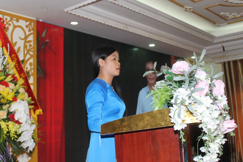 Bà Nguyễn Thị Thu Hằng, đại diện Hội Người mù tỉnh Nam Định đọc diễn văn tại lễ kỷ niệm - Ảnh: Hồ Thanh