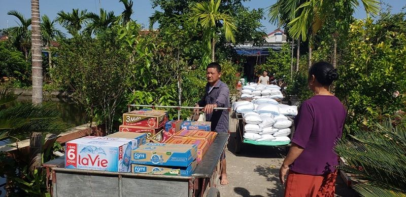 Sáng 23/10, gia đình bác Khuê cùng người dân trong thôn Nhật Tân phối hợp với Tạp chí Điện tử Hòa nhập đưa những vật, nhu yếu phẩm lên xe tải để chuẩn bị đưa vào sẻ chia với đồng bào các tỉnh miền Trung.