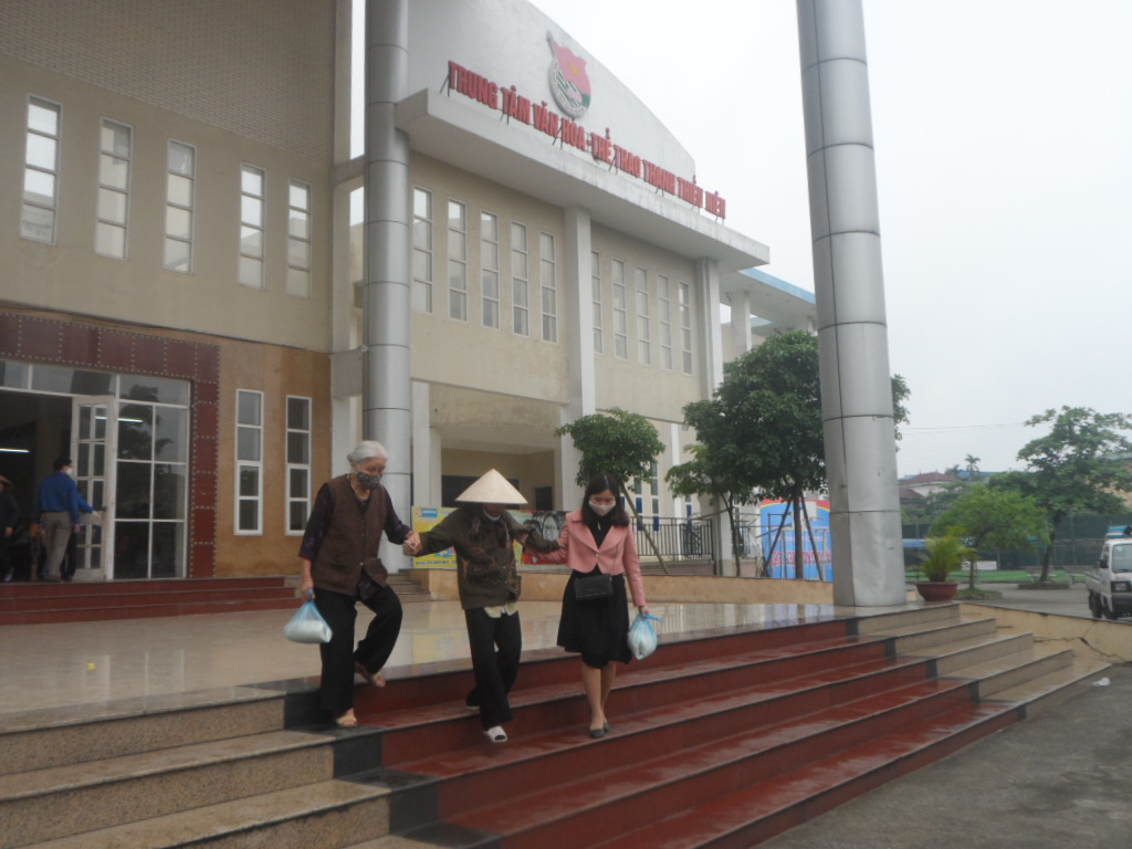 Giúp người nghèo là người cao tuổi ra về sa6u khi nhận gạo.