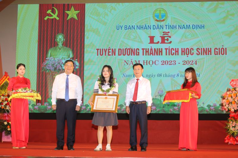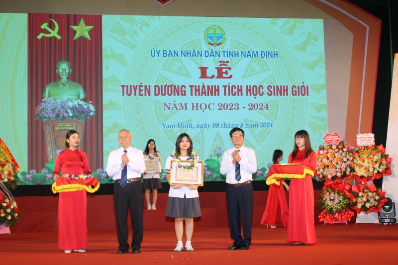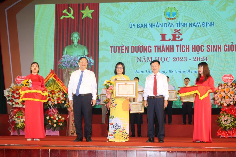 Tại Lễ tuyên dương, đồng chí Phạm Gia Túc, Ủy viên Trung ương Đảng, Bí thư Tỉnh ủy Nam Định cùng các đồng chí lãnh đạo tỉnh đã tặng hoa, Bằng khen của Chủ tịch UBND tỉnh cho các cán bộ, giáo viên bồi dưỡng HSG, các em học sinh đạt giải Nhất, Nhì, Ba cấp quốc gia, thủ khoa toàn quốc trong kỳ thi tốt nghiệp THPT năm 2024 và Cuộc thi học sinh, sinh viên với ý tưởng khởi nghiệp toàn quốc 2024. Lãnh đạo Sở GD&ĐT, Hội Khuyến học tỉnh Nam Định đã tặng hoa, Giấy khen cho học sinh đạt giải Khuyến khích tại Kỳ thi chọn HSG quốc gia và Cuộc thi vô địch Tin học Văn phòng thế giới 2024. Tổng số tiền thưởng kèm theo các quyết định khen thưởng của Bộ GD&ĐT, UBND tỉnh Nam Định, Quỹ Khuyến học Khuyến tài Lương Thế Vinh tỉnh Nam Định, Sở GD&ĐT tỉnh Nam Định đã trao thưởng cho các thầy, cô dạy giỏi và 560 HSG tại Lễ tuyên dương là hơn 2,6 tỷ đồng.