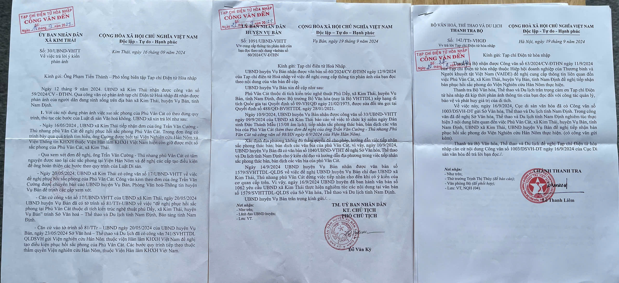Đến ngày 19/9/2024, Tạp chí điện tử Hòa Nhập nhận được Văn Bản số 1091/UBND- VHTT của UBND huyện Vụ Bản, cùng ngày 19/9 Tạp chí nhận được Văn bản số 142/TTr – VHTT của bộ Văn hóa, Thể thao và Du lịch.