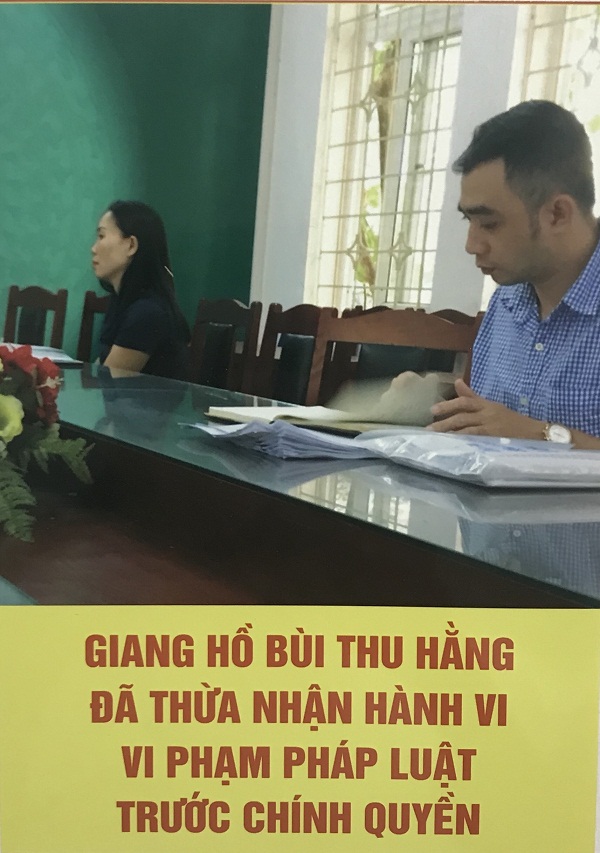 Một trong số các đối tượng xã hội đen ngồi làm việc với chính quyền
