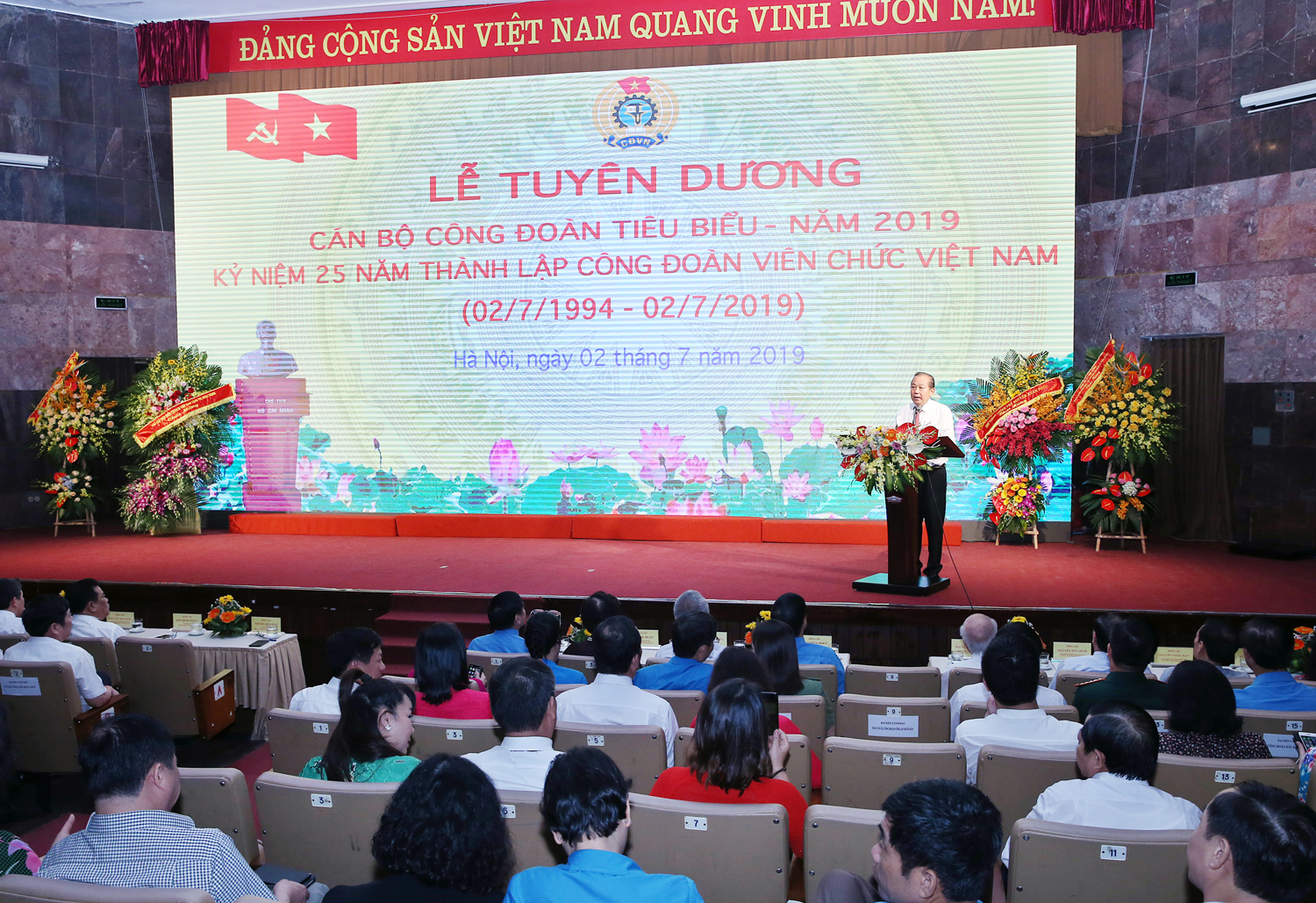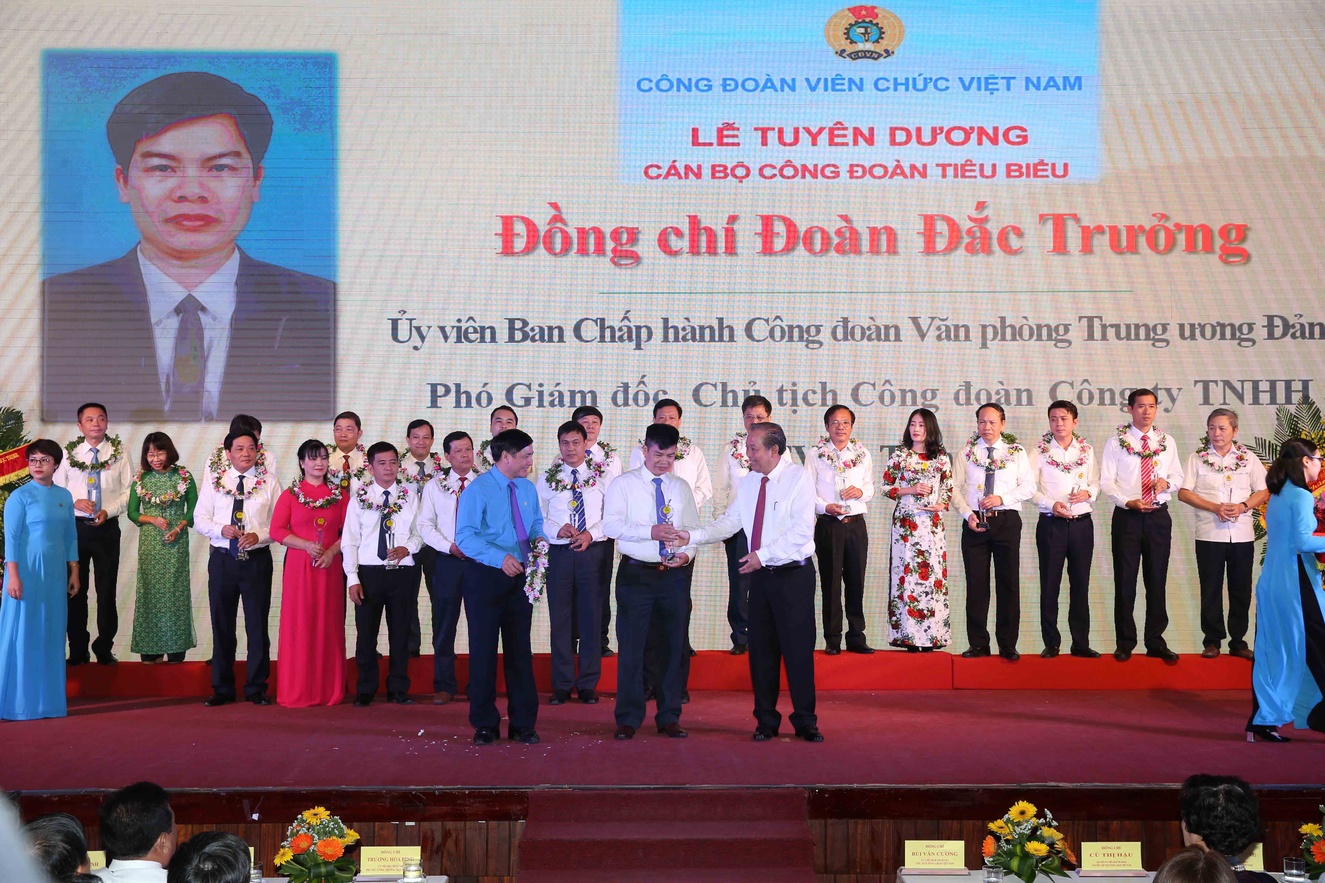 Nhân dịp này, Phó Thủ tướng Thường trực Chính phủ Trương Hoà Bình và lãnh đạo các ban, ngành Trung ương và Tổng Liên đoàn Lao động Việt Nam đã tuyên dương 90 cán bộ công đoàn xuất sắc của CĐVC Việt Nam.