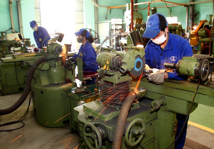Công nhân Công ty cổ phần Dụng cụ Cơ khí Xuất khẩu trong giờ làm việc. Ảnh: Ngọc Hà/TTXVN
