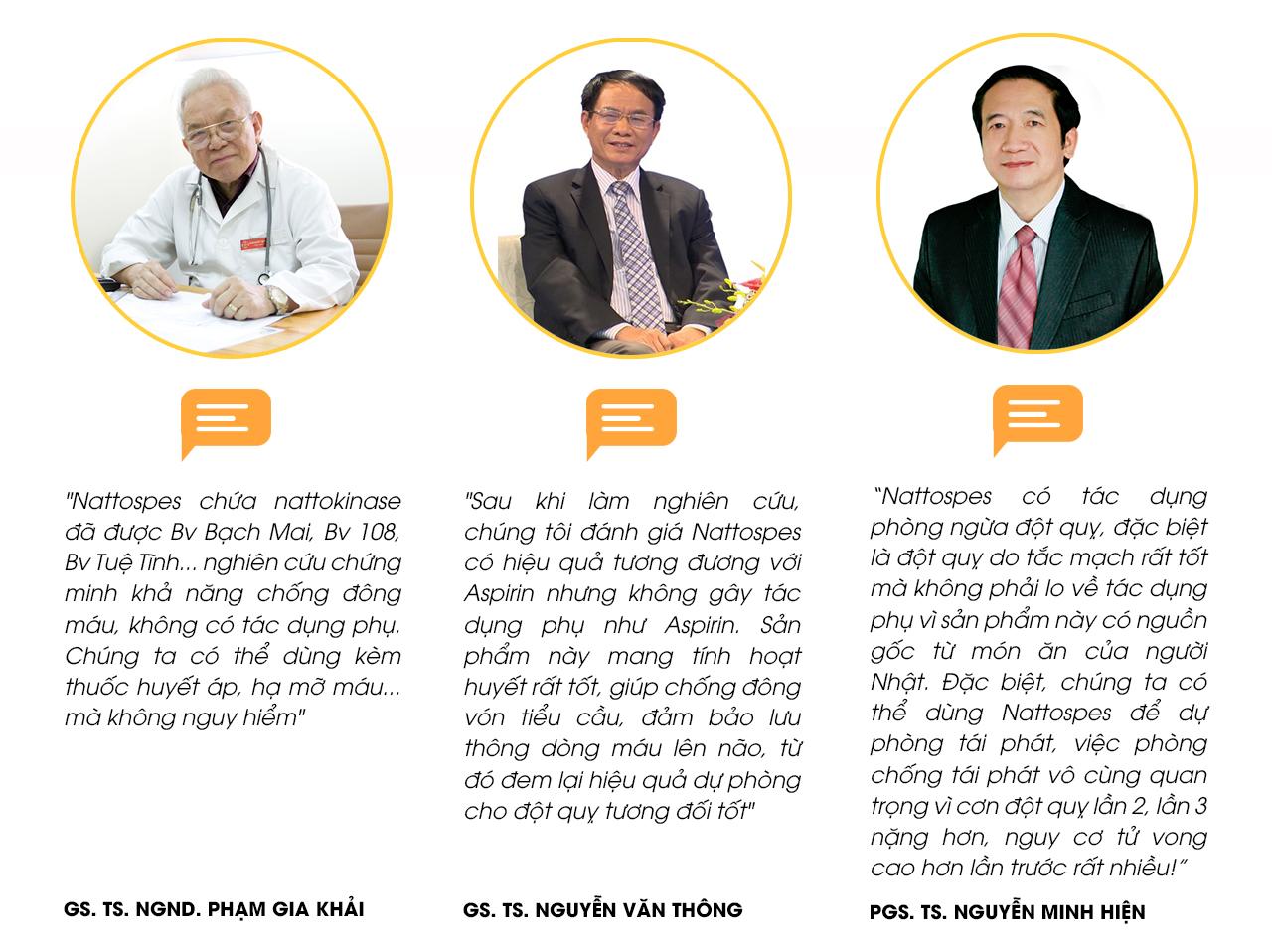 Không chỉ nhận được sự tin tưởng từ người bệnh, Nattospes cũng được nhiều chuyên gia đầu ngành tim mạch đánh giá cao về hiệu quả cải thiện di chứng và phòng ngừa tai biến: