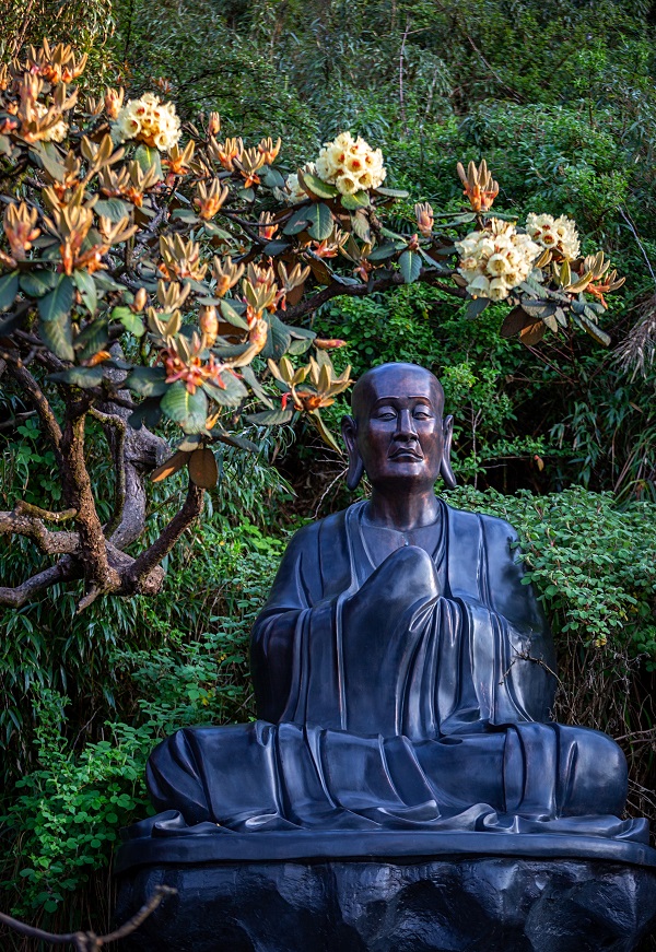 Ngắm hoa nở giữa cõi thiền tịnh, du khách cứ ngỡ mình lạc chốn bồng lai tiên cảnh. Bên những bức tượng Phật từ bi, bông hoa đỗ quyên có hình dáng như những chiếc chuông vàng, khắc vào trời xanh mây bồng của Fansipan một màu an lạc, vô vi.