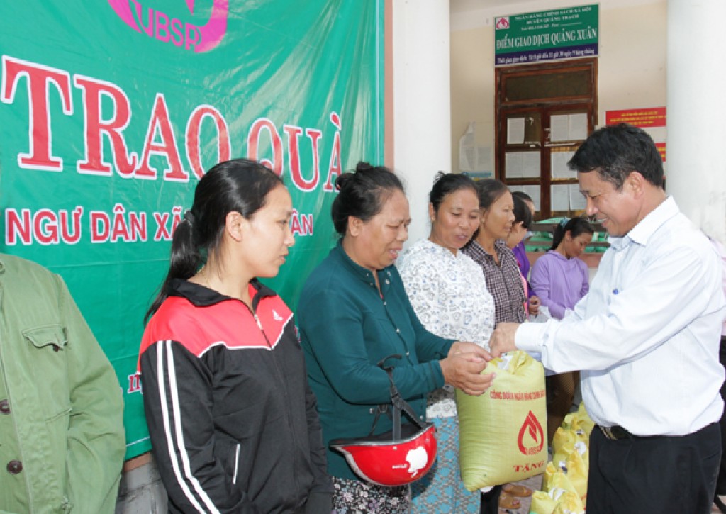 Phó TGĐ Nguyễn Văn Lý trao quà cho ngư dân xã Quảng Xuân, huyện Quảng Trạch, Quảng Bình