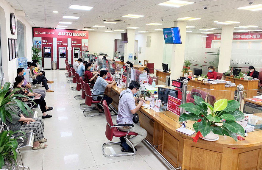 Khách hàng giao dịch với Ngân hàng Agribank. Ảnh Trọng Triết