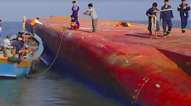 Tàu Hoàng Phúc lật úp lộ rõ những vết chắp vá loang lổ