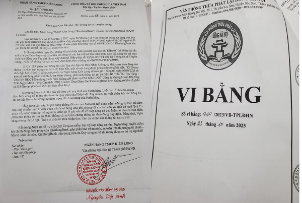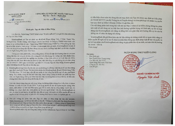 Ngày 3/11/2023, Tạp chí có văn bản số 183/CV-2023 gửi Văn phòng đại diện tại Hà Nội Ngân hàng Kiên Long, trong đó thể hiện 2 nội dung chính:
