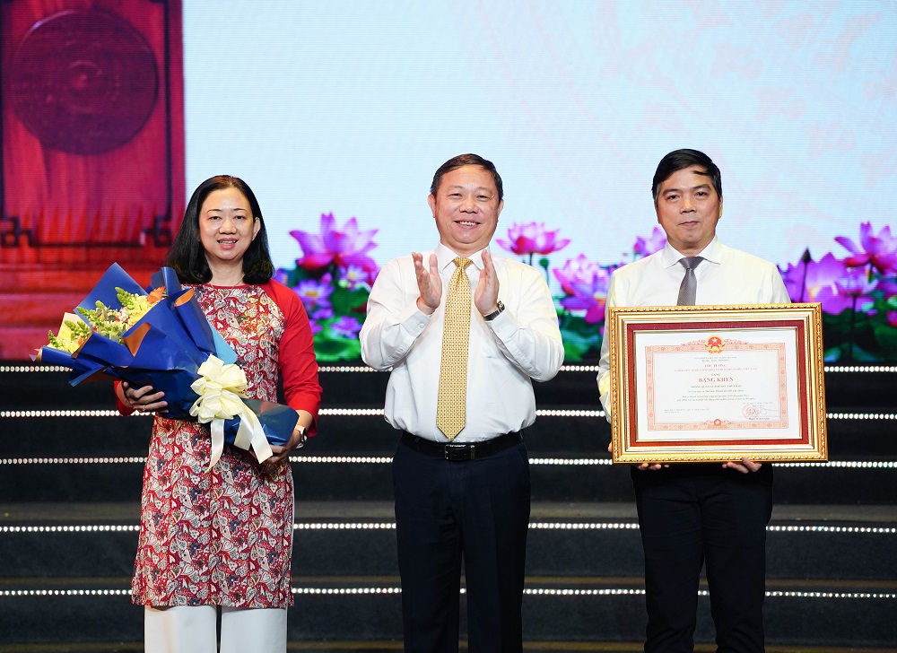 Tập thể Ban lãnh đạo Sở Văn hóa và Thể thao Thành phố tiếp nhận Cờ thi đua từ Bộ Văn Hóa - Thể thao và Du lịch trao tặng.