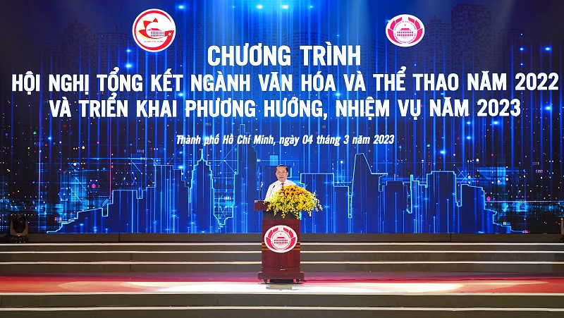 Tại hội nghị, Sở Văn hóa và Thể thao TP Hồ Chí Minh đã sân khấu hóa kết quả hoạt động ngành năm 2022 và triển khai nhiệm vụ 2023 thông qua chương trình biểu diễn nghệ thuật, hình ảnh, video theo từng chủ đề gắn liền với Thành phố.