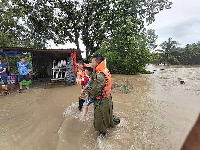 Lực lượng chức năng giúp người dân đến nơi an toàn