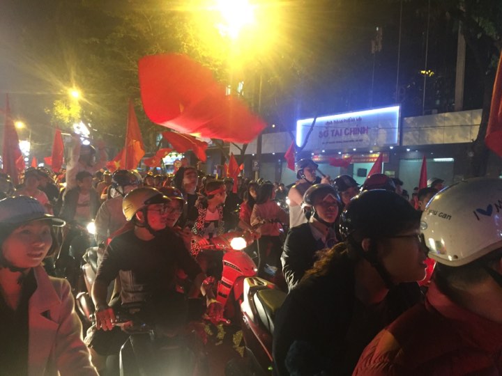 Cả đêm nay, sẽ có hàng triệu người không ngủ để tận hưởng cảm giác ngây ngất, men say chiên thắng. Kể cả bè bạn quốc tế đang làm việc và du lịch tới Việt Nam cũng được chia sẻ hương vị này. Một niềm hạnh phúc vỡ òa, từng giờ từng phút lan rộng khắp phố phường.