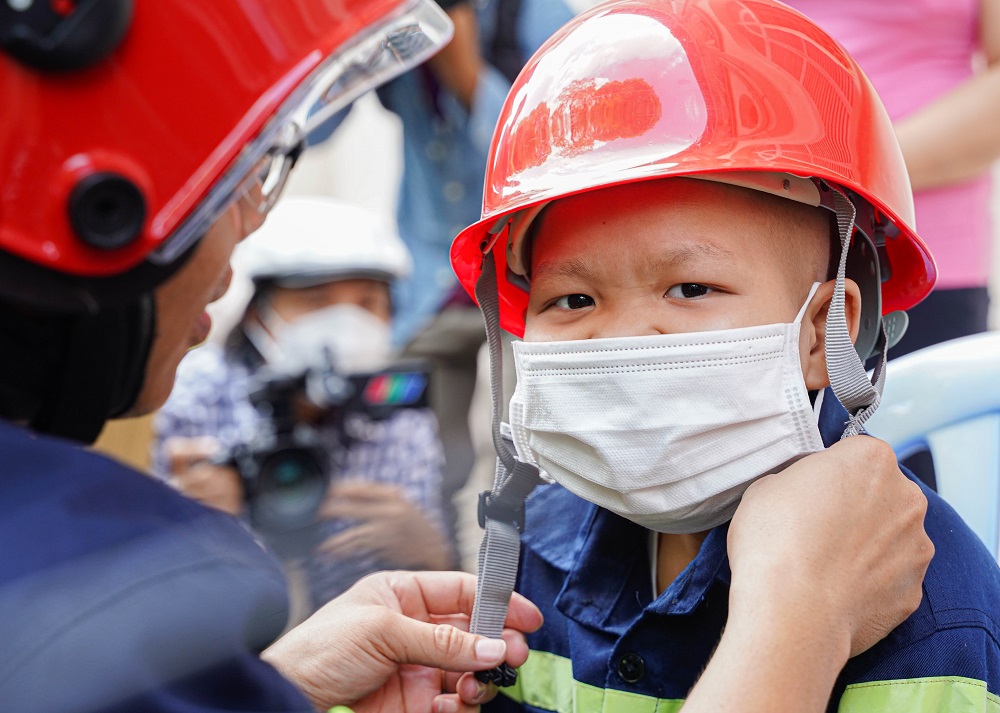 Ngày 4/8, bé Trần Đặng Trung Quân được các chiến sĩ phòng PC07, Công an TP Hồ Chí Minh phối hợp cùng Bệnh viện Nhi đồng 2, hiện thực hóa ước mơ làm lính cứu hỏa ngay tại nơi điều trị.