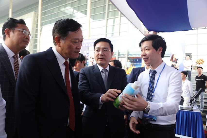 Thứ trưởng Bộ KH&CN Trần Văn Tùng và ông Vũ Việt Văn - Phó Chủ tịch UBND tỉnh Vĩnh Phúc (ở giữa) có mặt trực tiếp tại sự kiện.