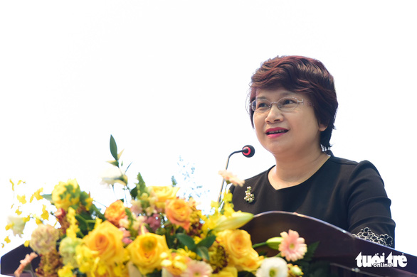 PGS.TS Nguyễn Thu Thủy - vụ trưởng Vụ Giáo dục đại học phát biểu tại ngày hội (Nguồn: tuoitre.vn)