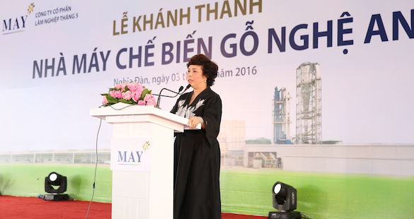 Phát biểu tại buổi lễ, Phó Thử tướng Vương Đình Huệ ghi nhận những sự nỗ lực của tỉnh Nghệ An và Công ty CP Lâm nghiệp Tháng 5 trong việc đầu tư dự án và đưa giai đoạn 1 của nhà máy vào hoạt động đúng tiến độ. Phó Thủ tướng Vương Đình Huệ chỉ đạo tỉnh Nghệ An và nhà đầu tư tiếp tục phối chặt chẽ hơn nữa để phát triển bền vững vùng nguyên liệu, góp phần chuyển dịch cơ cấu kinh tế nông nghiệp miền Tây của tỉnh Nghệ An.