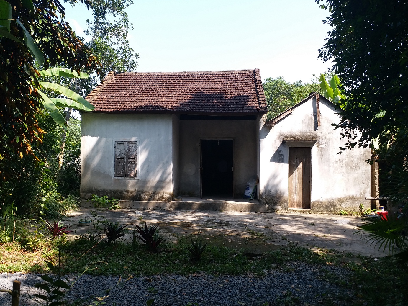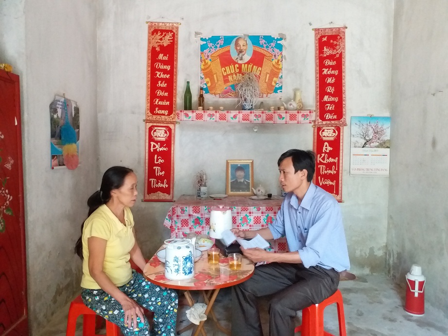 | Phóng viên Hòa Nhập làm việc với bà Cao Thị Nhan trong ngôi nhà tồi tàn của bà |