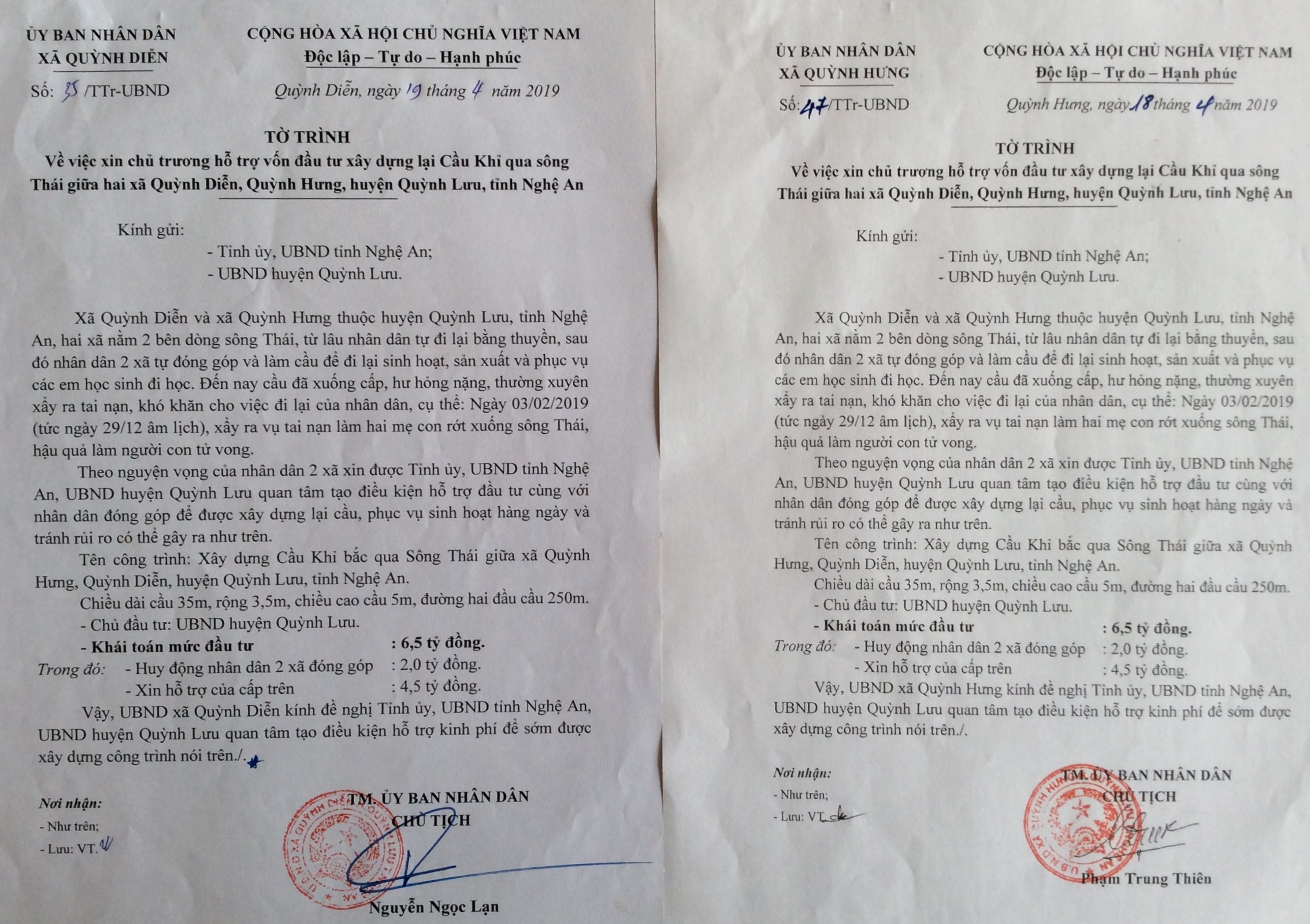 | Nội dung tờ trình của UBND xã Quỳnh Diễn và UBND xã Quỳnh Hưng gửi Tỉnh ủy, UBND tỉnh Nghệ An, UBND huyện Quỳnh Lưu. |
