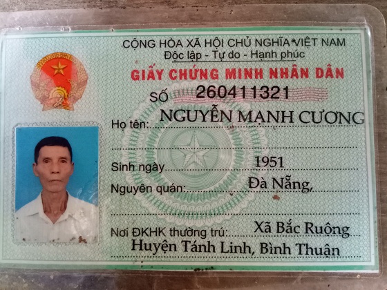 | Ông Nam mất trí nhớ nên CMND của ông được đặt tên khác |