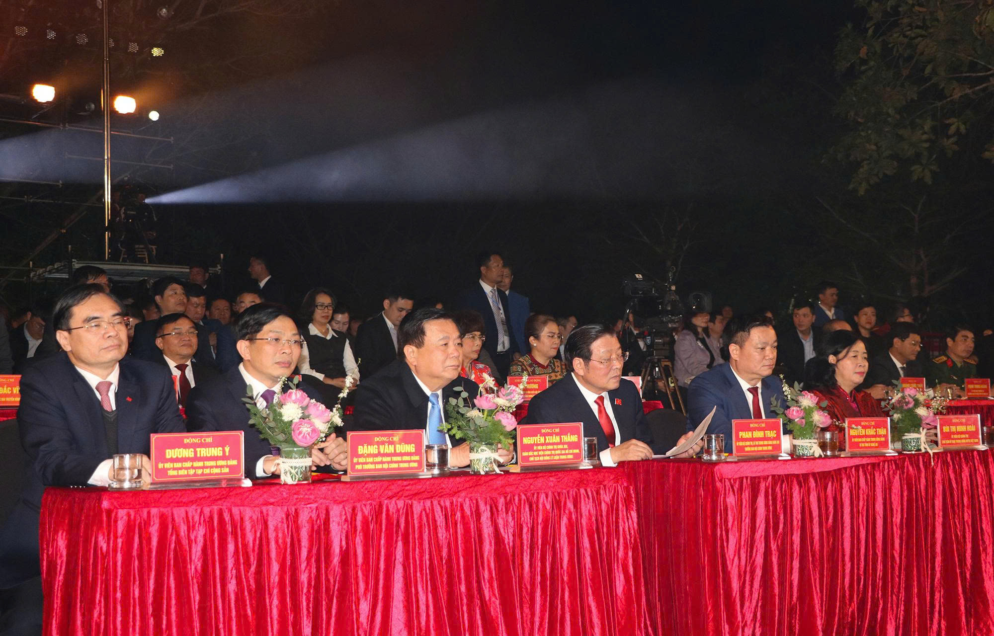 Cùng dự tại các điểm cầu có các đồng chí: Ủy viên Bộ Chính trị, nguyên Ủy viên Bộ Chính trị, Ủy viên Ban Bí thư, nguyên Ủy viên Ban Bí thư, Ủy viên Trung ương Đảng, nguyên Ủy viên Trung ương Đảng; các đồng chí lãnh đạo, nguyên lãnh đạo Đảng, Nhà nước, Mặt trận Tổ quốc Việt Nam; lãnh đạo ban, bộ, ngành Trung ương, các địa phương; các đồng chí lão thành cách mạng, các Mẹ Việt Nam Anh hùng, cán bộ đảng viên và đông đảo nhân dân các tỉnh, thành phố tại các điểm cầu.