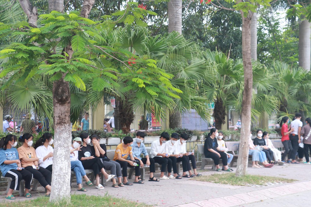 Các thí sinh háo hức chờ đợi trước giờ vào phòng thi.