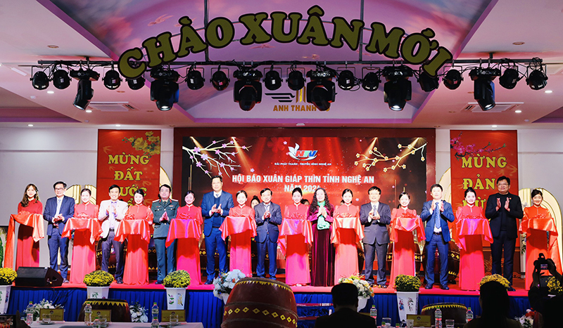 Các đại biểu cắt băng khai trương Hội báo xuân, chính thức mở cửa gian trưng bày và đọc báo Xuân Giáp Thìn tỉnh Nghệ An năm 2024