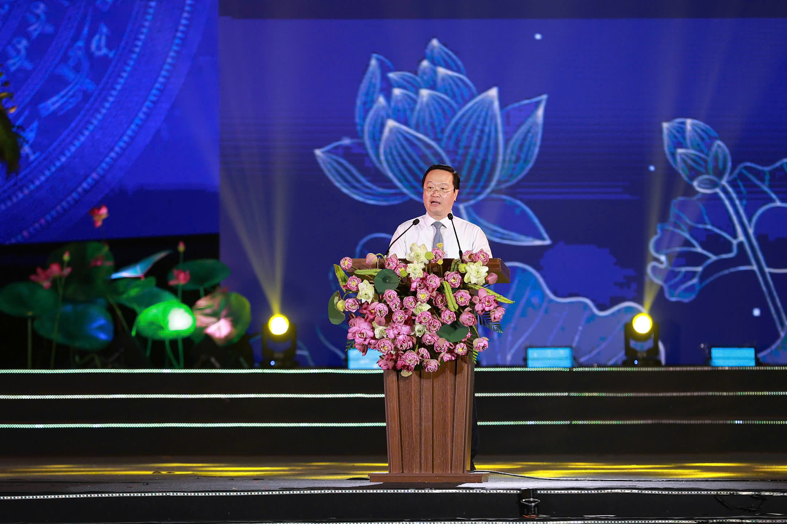 Ông Nguyễn Đức Trung - bí thư Tỉnh ủy Nghệ An, phát biểu khai mạc Lễ hội Làng Sen 2025