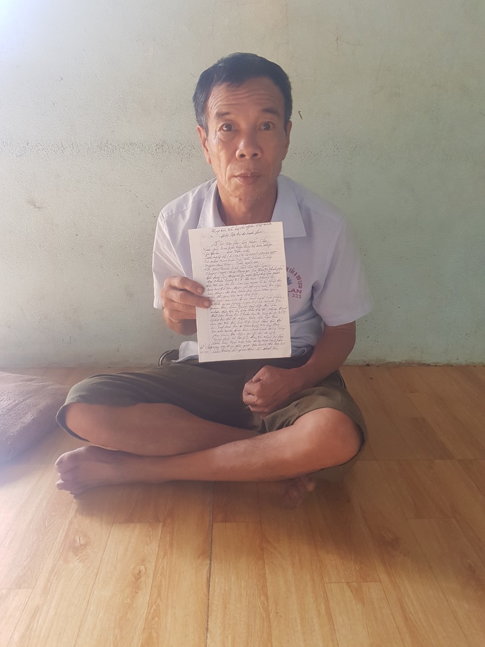 Ông Lộc Văn Ích (một cựu chiến binh ở xã Châu Cường, huyện Quỳ Hợp) viết đơn cầu cứu khẩn cấp gửi Tạp chí điện tử Hòa Nhập.