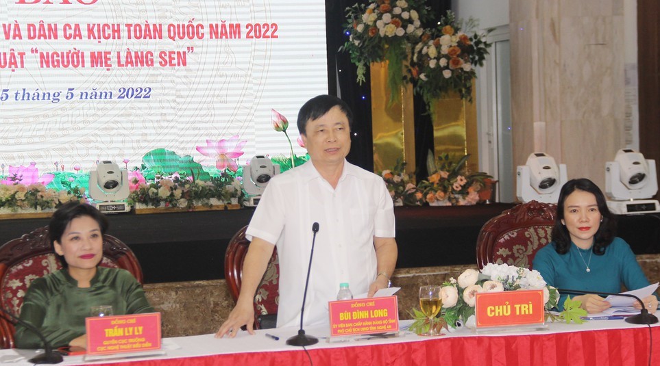 Phát biểu tại buổi họp báo, ông Bùi Đình Long – Phó Chủ tịch UBND tỉnh Nghệ An cho biết: Nghệ An rất vinh dự khi được phối hợp với Bộ Văn hóa, Thể thao và Du lịch, Trung ương Hội liên hiệp Phụ nữ Việt Nam, UBND thành phố Hồ Chí Minh để triển khai chuỗi hoạt động nhân kỷ niệm 132 năm Ngày sinh Chủ tịch Hồ Chí Minh; đặc biệt là tổ chức Liên hoan Tuồng và Dân ca kịch toàn quốc và Chương trình nghệ thuật “Người Mẹ Làng Sen”. Đây là cơ hội để tỉnh Nghệ An nói riêng và các đơn vị tham dự Liên hoan giới thiệu, quảng bá, phát huy được bản sắc văn hóa của địa phương mình. UBND tỉnh đã ban Kế hoạch số 242/KH-UBND ngày 15/4, trong đó giao nhiệm vụ cụ thể cho từng ngành, đơn vị có liên quan thực hiện các công việc từ lựa chọn địa điểm, tuyên truyền, đảm bảo an ninh và các điều kiện khác cho Liên hoan.
