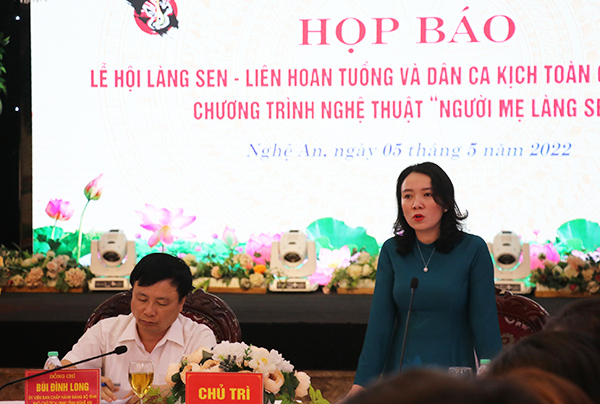 Bà Trần Ly Ly - Quyền Cục trưởng Cục Nghệ thuật biểu diễn, Bộ VHTT&DL, cho biết: Liên hoan Tuồng và Dân ca kịch toàn Quốc là hoạt động được Bộ VHTT&DL tổ chức 2 năm một lần. Năm nay, Liên hoan sẽ kết hợp với hoạt động kỷ niệm Ngày sinh nhật Bác và Lễ hội Làng Sen tại TP Vinh và huyện Nam Đàn, Nghệ An.