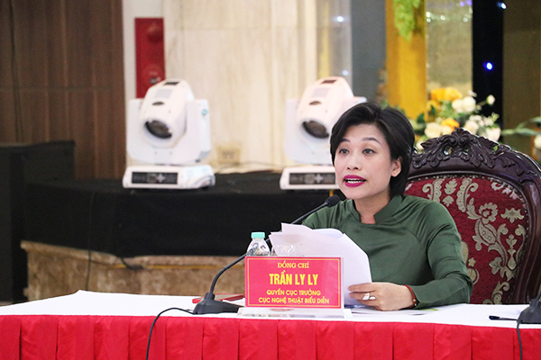 Bà Trần Ly Ly - Quyền Cục trưởng Cục Nghệ thuật biểu diễn thông tin về Liên hoan Tuồng và Dân ca kịch toàn quốc năm 2022.