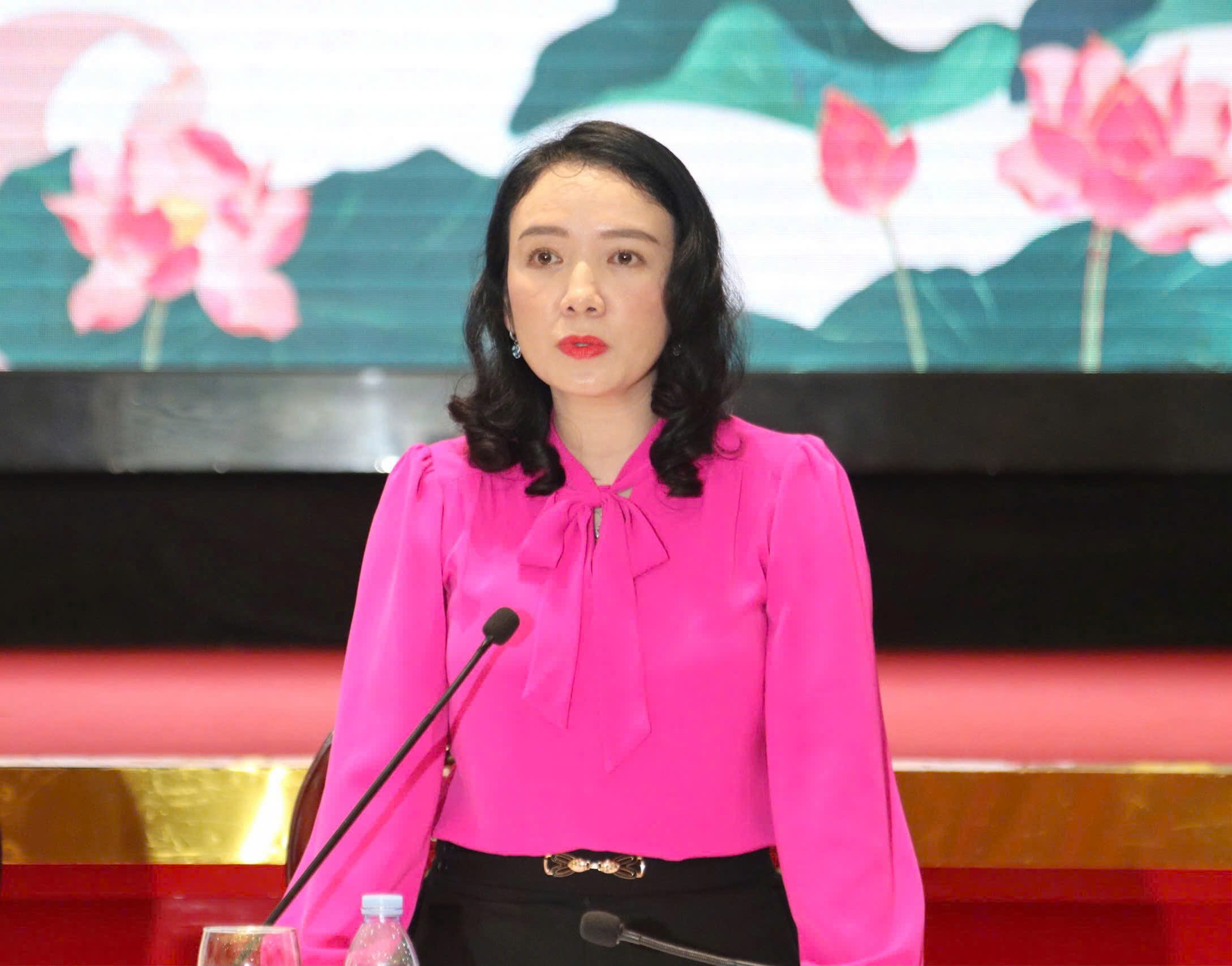 Bà Trần Thị Mỹ Hạnh, Giám đốc Sở Văn hóa - Thể thao và Du lịch tỉnh Nghệ An thông tin về Lễ hội Làng Sen năm 2025