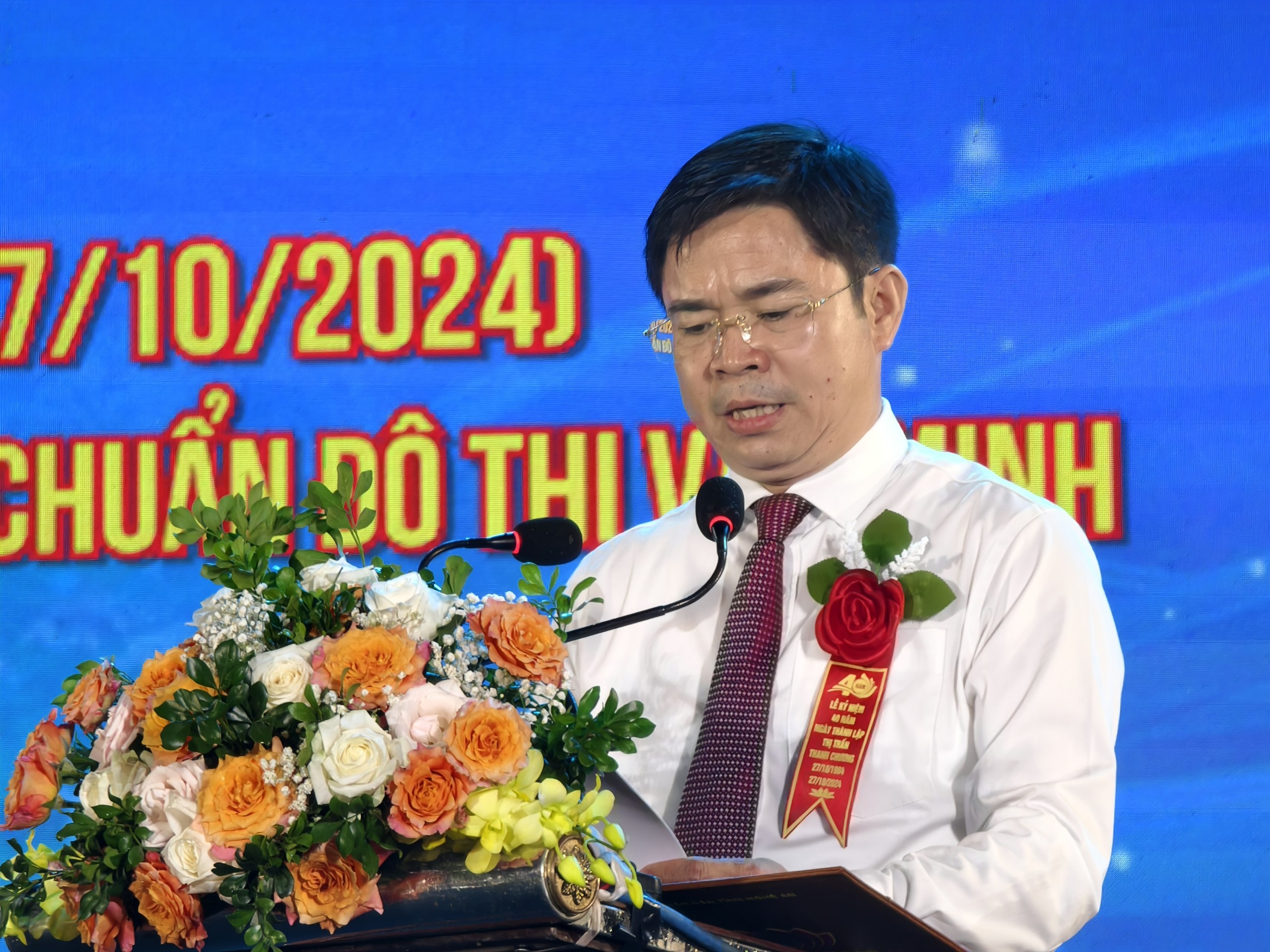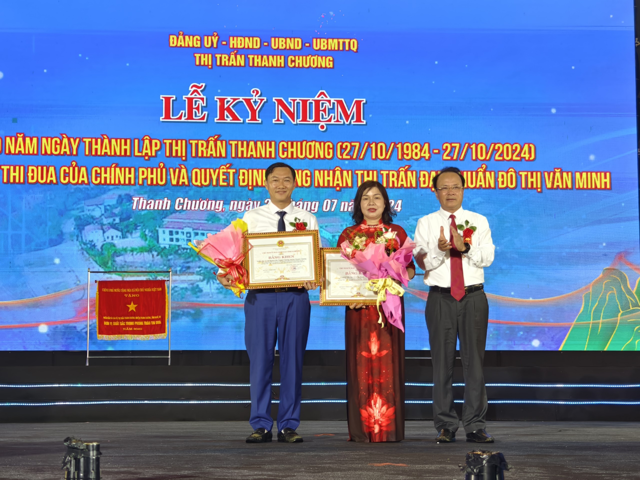 Phát biểu tại Lễ, Ông Trình Văn Nhã - Phó bí thư Huyện ủy, Chủ tịch UBND huyện Thanh Chương đã ghi nhận và biểu dương những kết quả của Đảng bộ và Nhân dân thị trấn đã đạt được trong thời gian qua. Ông Nhã cũng khẳng định thêm: Sắp tới, khi Đề án sắp xếp đơn vị hành chính của thị trấn Thanh Chương được Quốc hội phê duyệt sẽ mở ra không gian phát triển và cơ hội, thời cơ mới cho thị trấn khi sáp nhập 2 xã Thanh Lĩnh và Thanh Đồng. Tuy nhiên, nhiều khó khăn, thách thức cũng đặt ra. Bởi vậy, đề nghị Đảng bộ, chính quyền và nhân dân Thị trấn Thanh Chương tiếp tục phát huy truyền thống cách mạng, tinh thần đoàn kết, vươn lên phấn đấu hoàn thành nhiệm vụ chính trị trên tất cả các mặt công tác; quán triệt sâu sắc các quan điểm, chính sách của Đảng, Nhà nước, chỉ đạo của huyện; phát huy sự sáng tạo, tư duy đột phá nhằm khai thác những tiềm năng, thế mạnh, huy động và sử dụng hiệu quả mọi nguồn lực để thúc đẩy sự phát triển của Thị trấn, xứng đáng là “đầu tàu” kinh tế - xã hội của cả huyện. Trong đó, cần quan tâm phát huy những thế mạnh về phát triển các ngành công nghiệp, tiểu thủ công nghiệp, xây dựng, dịch vụ, thương mại. Tiếp tục đầu tư xây dựng kết cấu hạ tầng đô thị văn minh giàu đẹp…