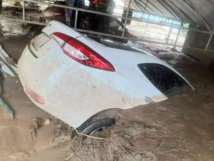 Xe ô tô bị lũ quét cuốn trôi và vùi lấp phần đầu tại huyện Kỳ Sơn, Nghệ An.