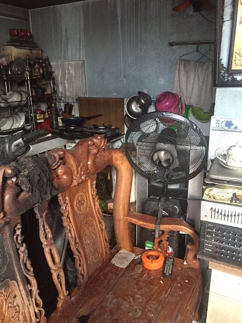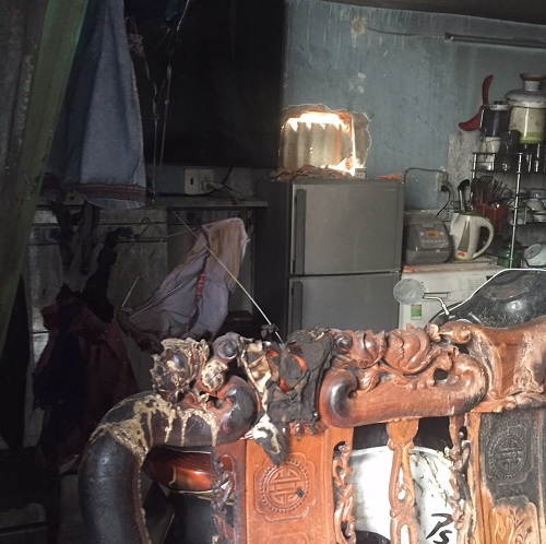 Bà L, người đầu tiên phát hiện ra vụ hỏa hoạn, nhớ lại: “Khoảng 1h30 sáng ngày 24/6, tôi có nghe được tiếng chó sủa trước cửa nhà mình. Vì không ngủ được và không yên tâm, nên tôi nhìn qua cửa chính nhà, thì hoảng hồn thấy bên trong nhà đối diện bị cháy sáng rực, tôi hô to cho mọi người xung quanh đến dập lửa, cứu người. Vì cửa của gia đình nạn nhân là cửa kéo nên mọi người phải đập cửa, đục tường… khó khăn lắm mới có thể tiếp cận được đám cháy”.