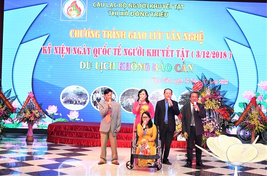 | Chị Nguyễn Thị Yến tại chương trình giao lưu nghệ thuật của CLB người khuyết tật |