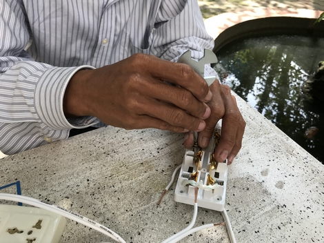 | Anh Minh tự lắp ráp ổ cắm điện. |