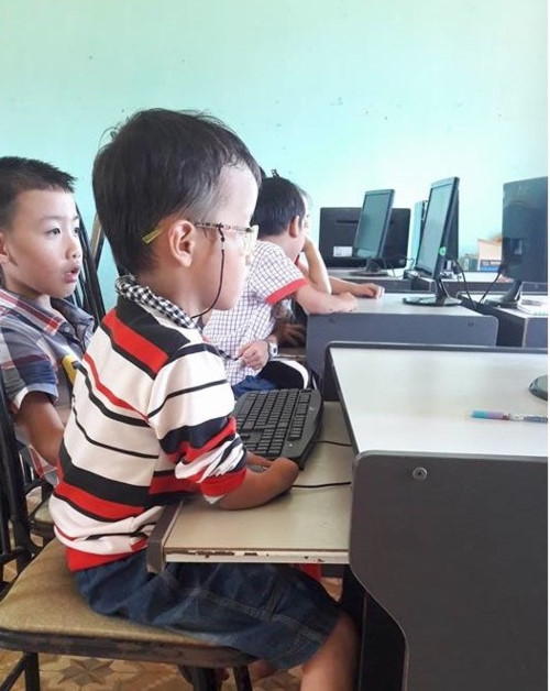 | Em Hoàng Đức Sơn trong một tiết thực hành tin học tại nhà trường |